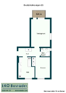 Trevlig lägenhet en trappa upp i mindre hyreshus. Balkong med kvällssol.